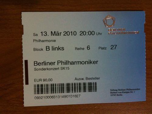 Category:ドイツ2010/02/09今度こそは!!チケット送ってもらいました。今度は間違いなく13日です3月2010年!!めちゃくちゃ良い席です。1階の真ん中っぽいです。ちなみにチケットはここから簡単に買えます。ベルリンフィルのホームページ全然余裕で買えます・・・。 ← 千本ノック morgen →コメントを残す コメントをキャンセルメールアドレスが公開されることはありません。 * が付いている欄は必須項目ですコメント名前 * メール * サイト 上に表示された文字を入力してください。 このサイトはスパムを低減するために Akismet を使っています。コメントデータの処理方法の詳細はこちらをご覧ください。